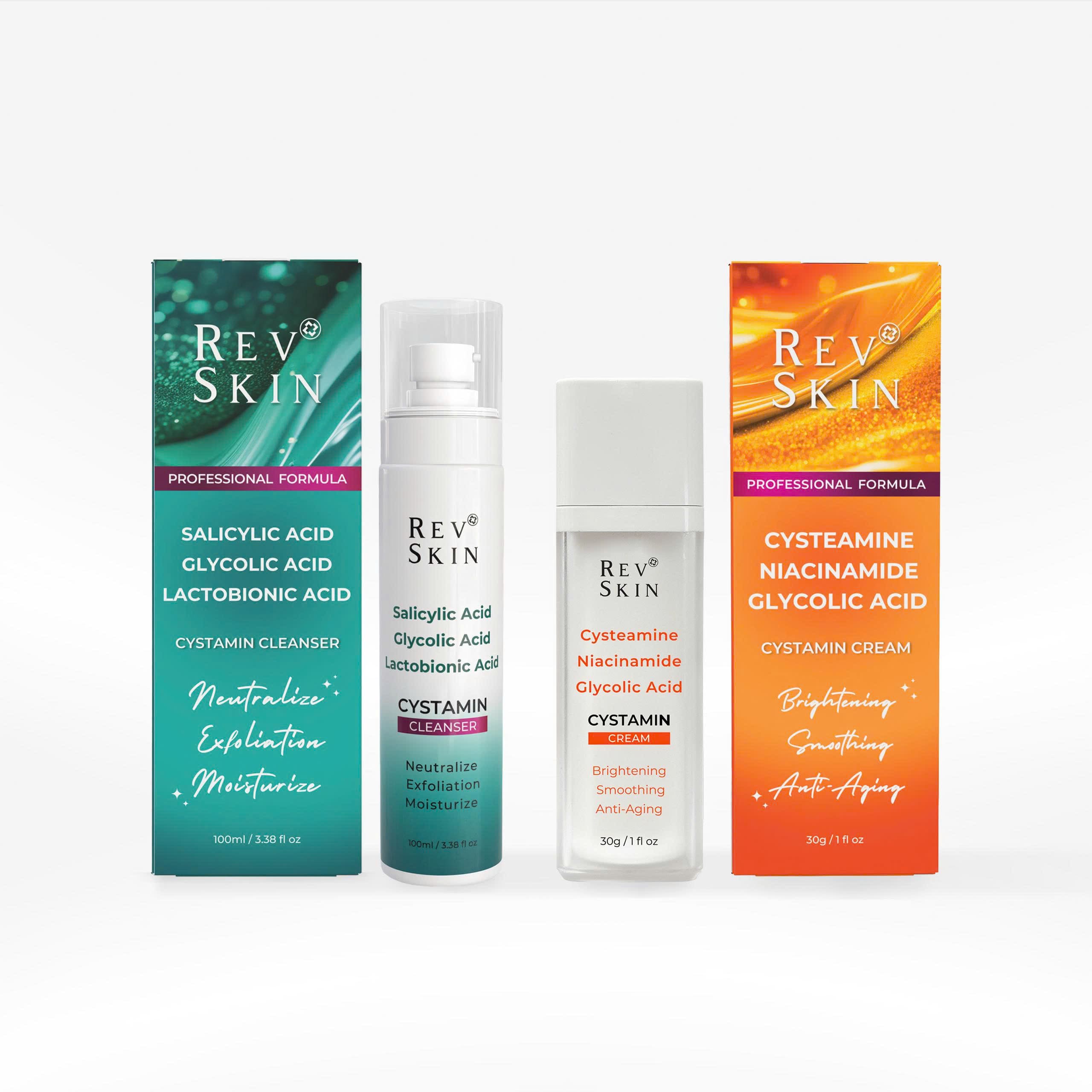 – Cystamin Cream: Cysteamine, Niacinamide, Glycolic Acid,