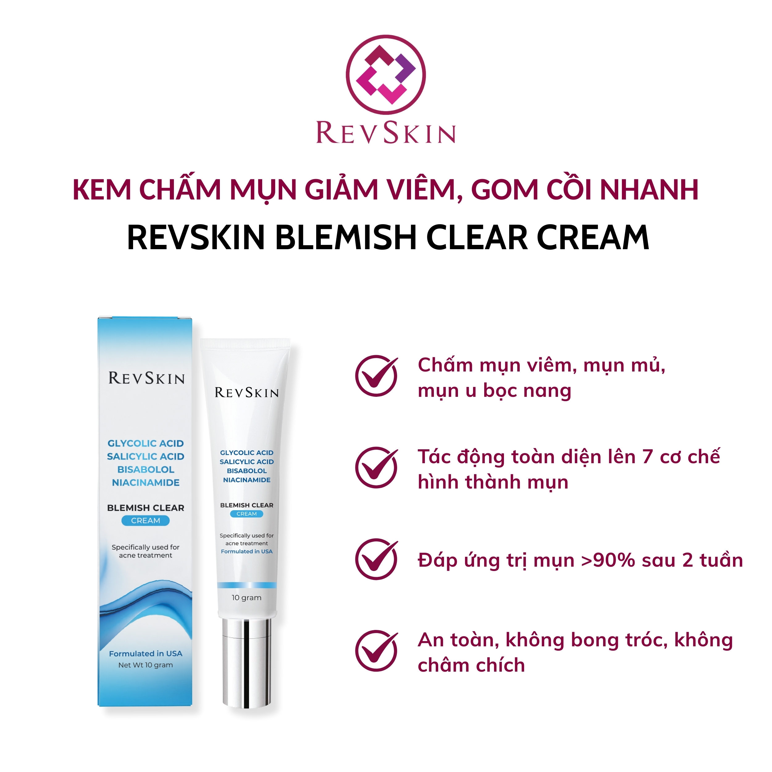 ✔︎ Hạn chế tái phát và ngừa mụn: Công thức giúp làm sạch sâu lỗ chân lông, kiểm soát dầu thừa và kháng viêm, từ đó hạn chế tái phát mụn mới, đồng thời ngăn ngừa hình thành mụn viêm trên da